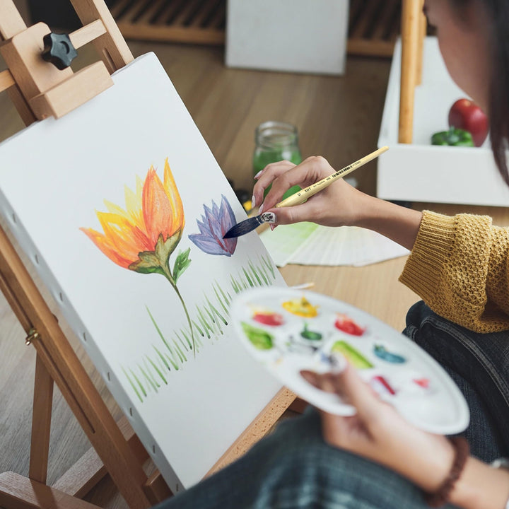 Our paint brushes are crafted with premium synthetic sheep hair, which the qualities of natural sheep hair. The soft and flexible bristles hold a generous amount of water, allowing for smooth and consistent paint flow. This feature is especially beneficial for creating beautiful washes, wet into wet blends, and broad strokes.
