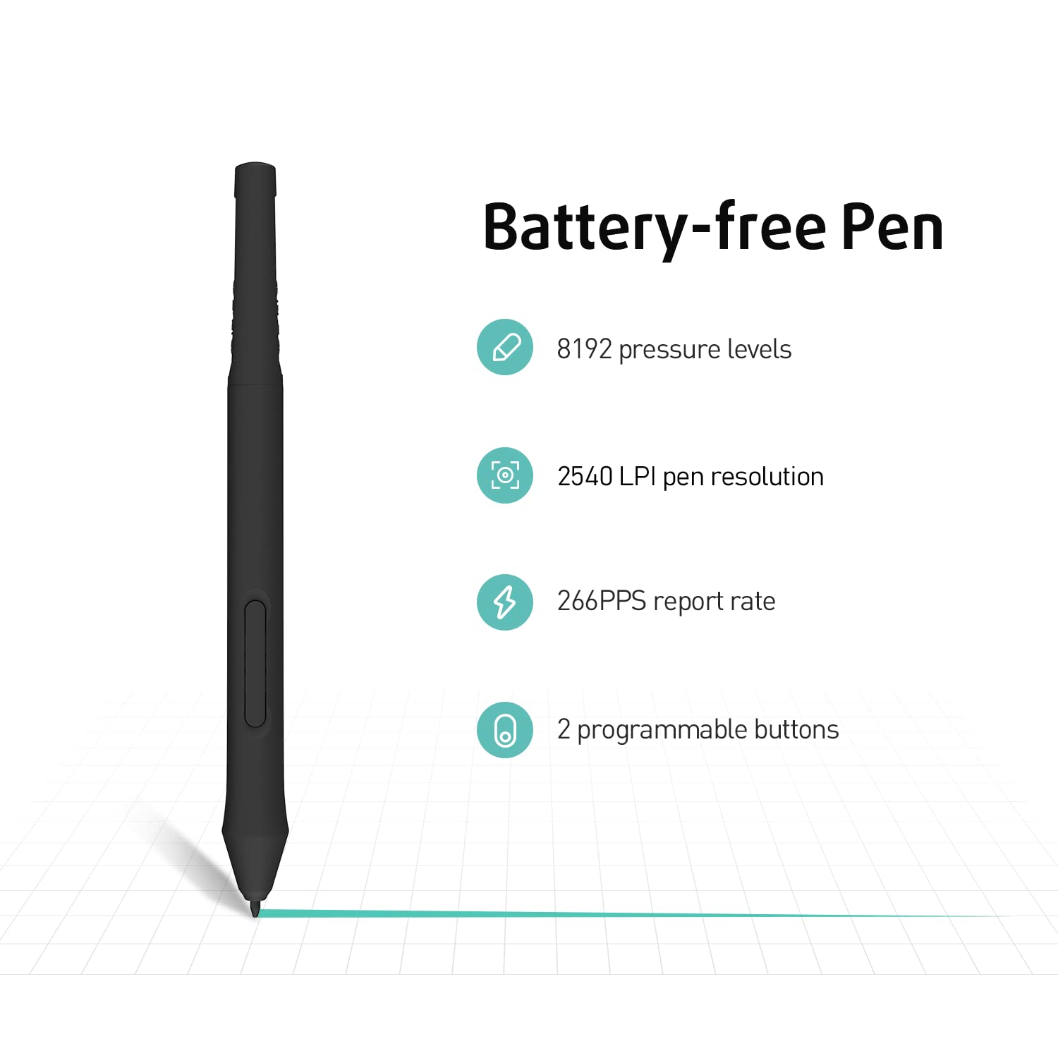 - Our battery-free pen is enhanced by a highly precise pressure sensor which utilizes 8192 level of pressure sensitivity. Two customizable side buttons allow you to put your favourable shortcuts on it.