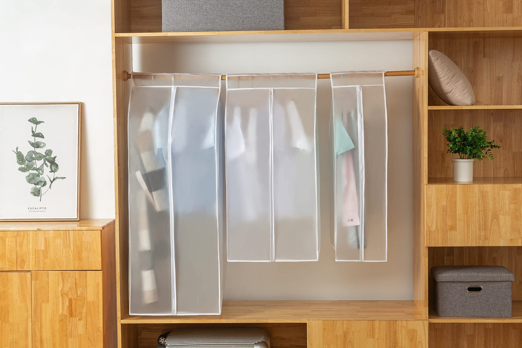 - Minimalist: Our hanging clothes storage bag for closet is designed simply, no colors, no patterns, no clear windows, no any uncalled-for design. This coat dust cover looks neater and cleanlier