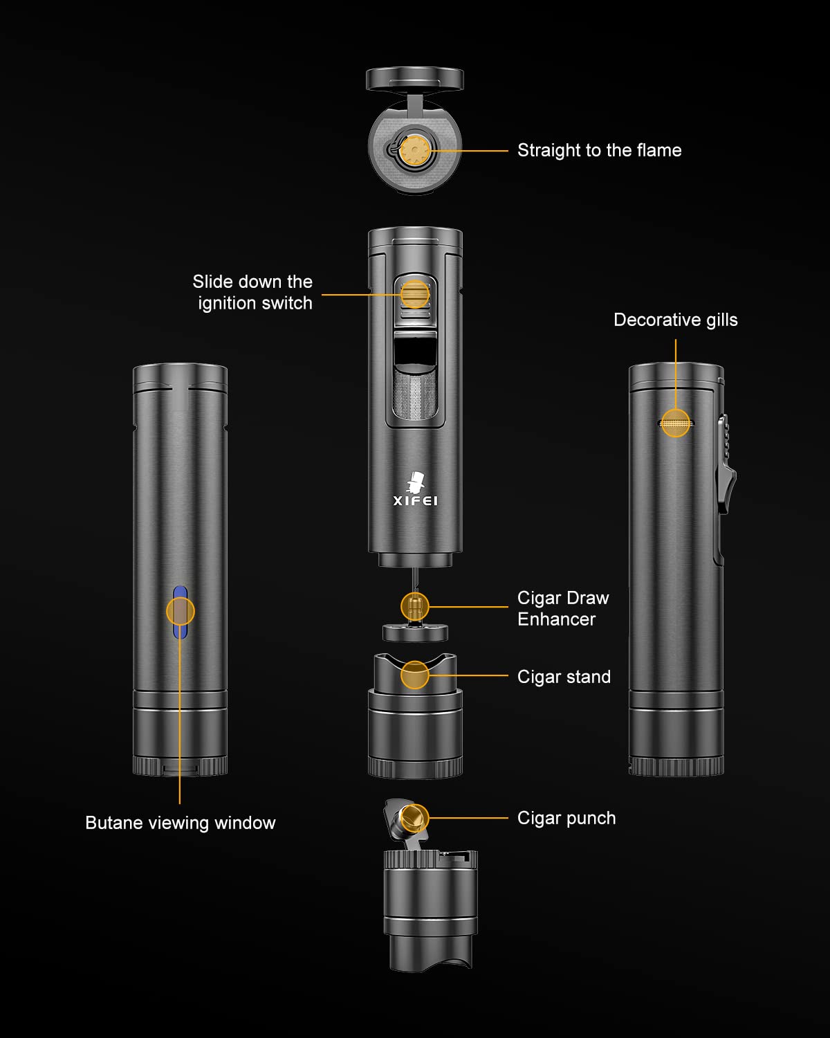 - Powerful: At the same time you own this lighter, you have the Cigar Puncher / Cigar Draw Enhancer / Cigar Stand. It can be removed and used independently