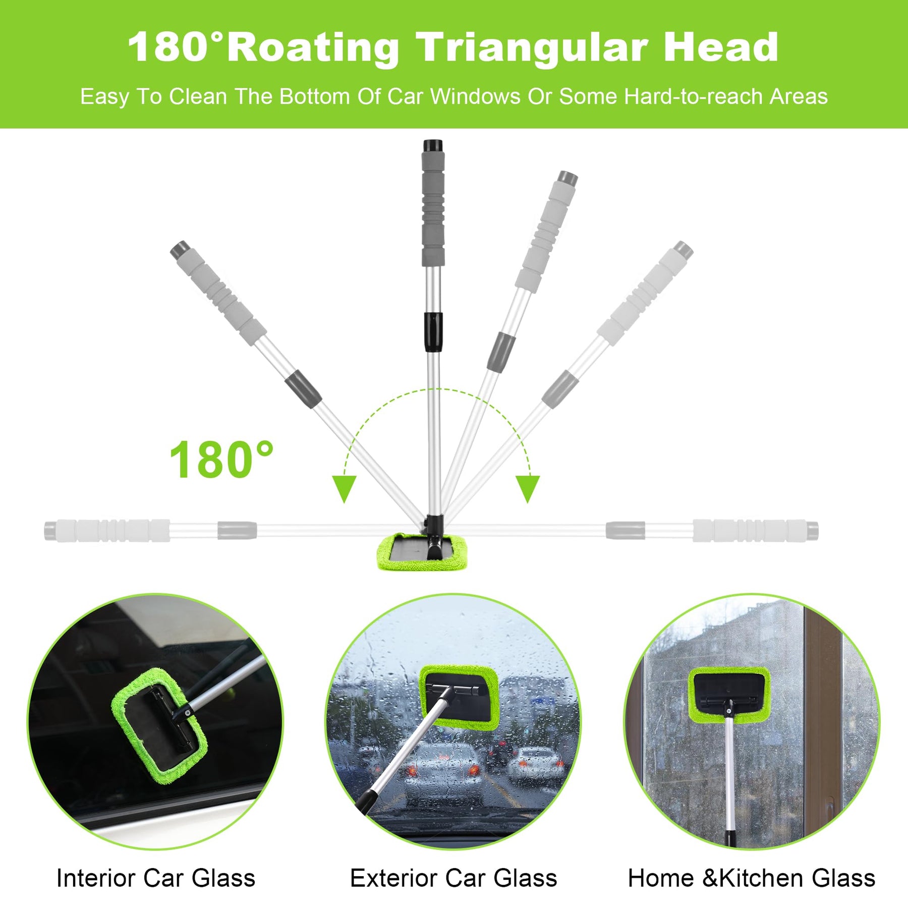 - Original Windshield Wiper Tools – XINDELL Car Window Cleaner - Windshield Glass Cleaning Tool with Extendable Handle, Reusable Microfiber Pads Cloth for Car Interior & Exterior, Streak-Free Auto Glass Cleaner (Green) by X XINDELL