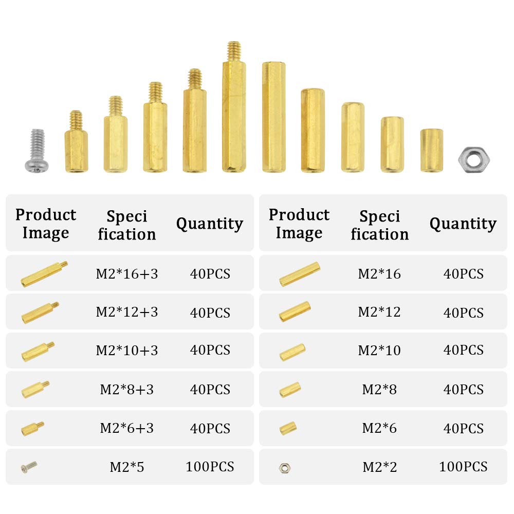 - Original Spacers – 600pcs M2 Brass Male-Female/Female-Female Spacer Standoff Screw Nut Assortment Kit and Stainless Steel Screw Nut Set (Brass M2) by XINGYHENG