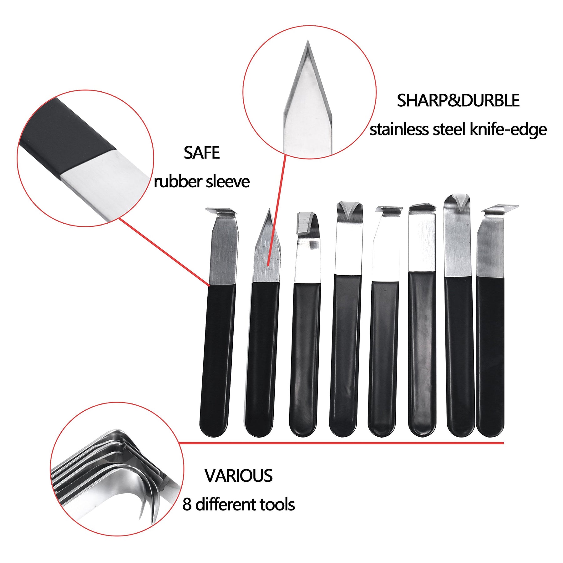 - Original Ceramic & Pottery Tools – 8 Pack Pottery Tools Stainless Steel, 8 Styles Carving Shaping Knives Craft Trimming Clay Sculpture Hand Tools Artist Ceramic Tools Set for Carving, Sculpting, Shaping, Modeling by YaeTek