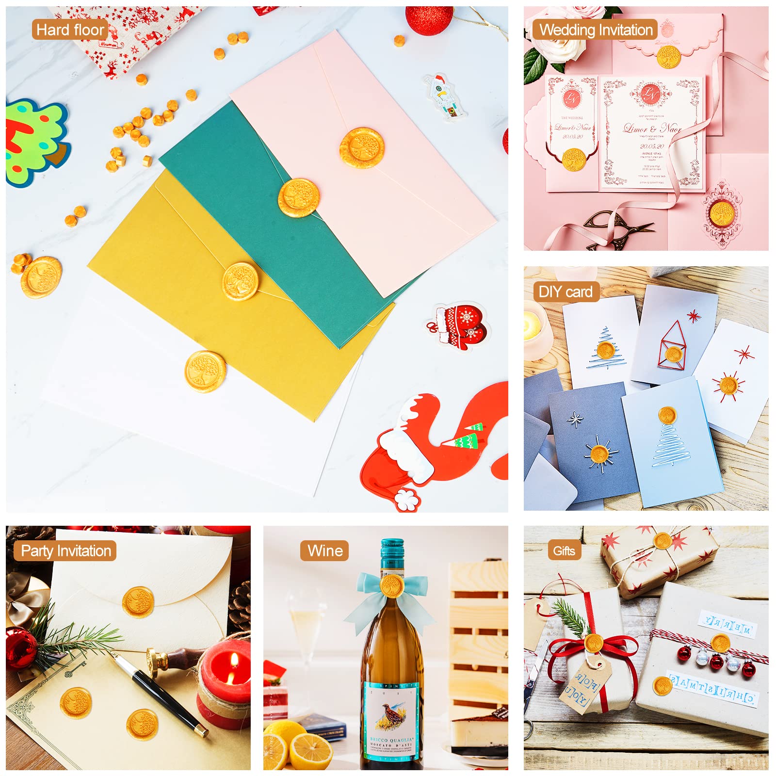 - Wide Range of Usage Good Idea for Christmas letters, Retro letters, Envelopes, Greeting cards, crafts, gifts sealing, wine sealing, wedding or party invitations, thank you cards, tea or cosmetics packaging and other craft projects, and also can apply to stationary, maps, manuscripts, cards, scrapbooking and so on. This wax seal stamp set must be a beautiful and creative gift