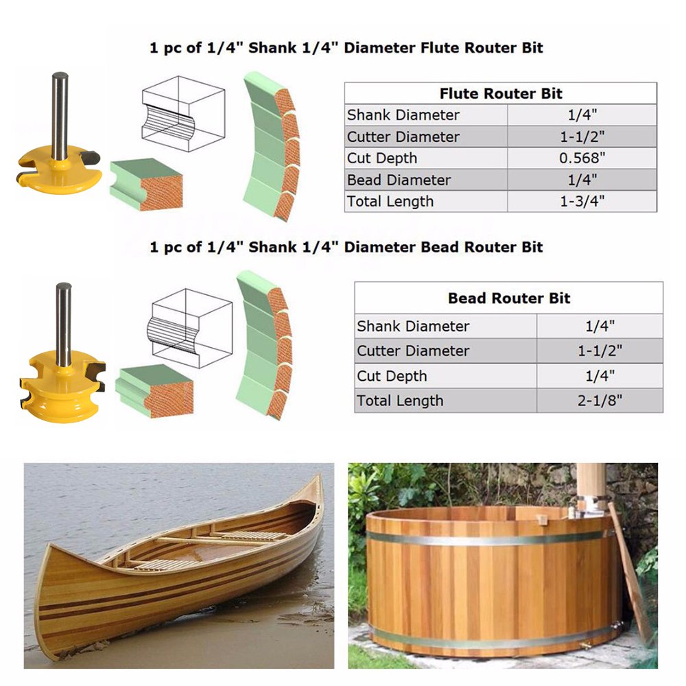 - Original Joinery Bits – Yakamoz 1/4-Inch Shank Flute & Bead Canoe Joint Router Bit Set Carbide-Tipped Woodworking Milling Cutter by YAKAMOZ