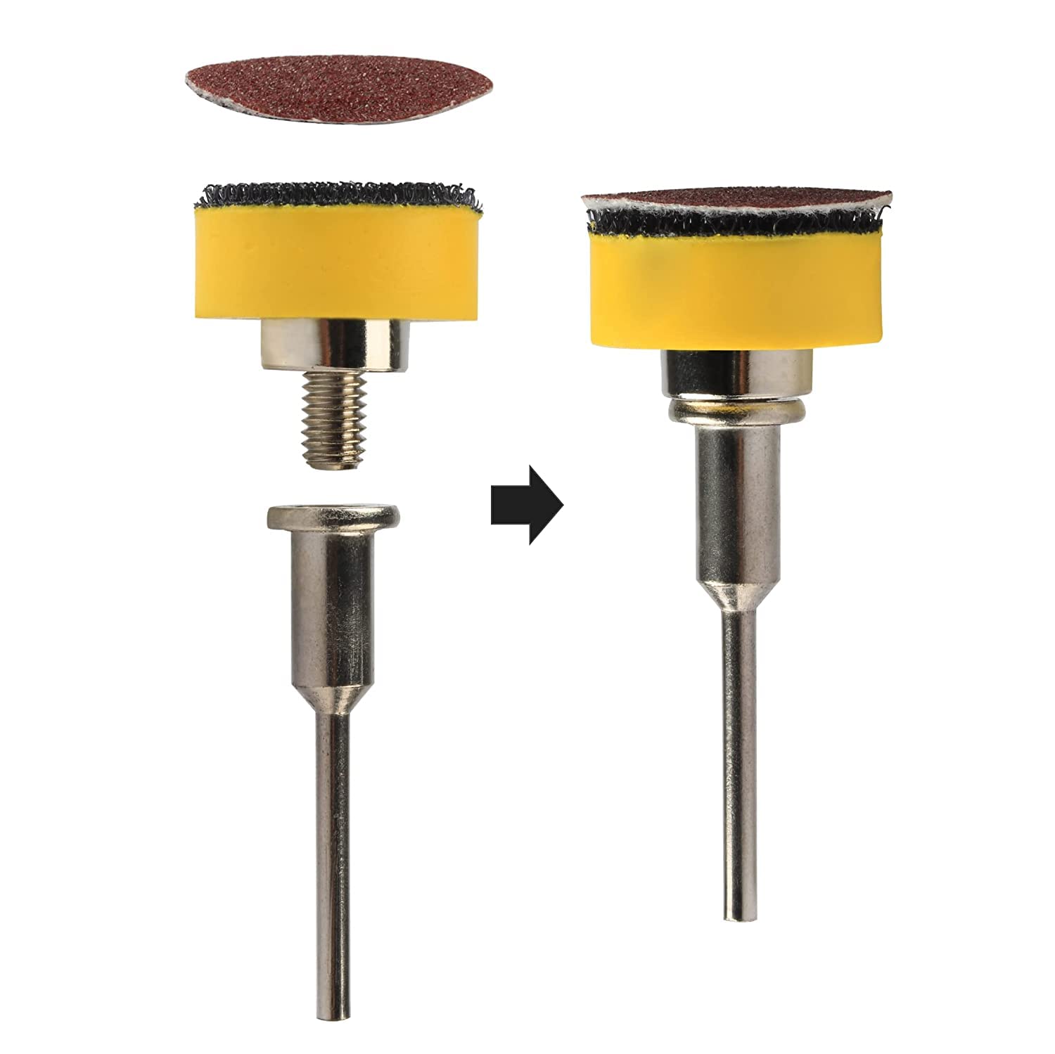 - Original Hook & Loop Discs – Yakamoz 100Pcs 1 Inch Sanding Discs Pad Kit Hook and Loop Sand Paper Assortment Pack with 1/8 Inch Shank Backing Pads Plate Holder for Dremel Rotary Tool by YAKAMOZ