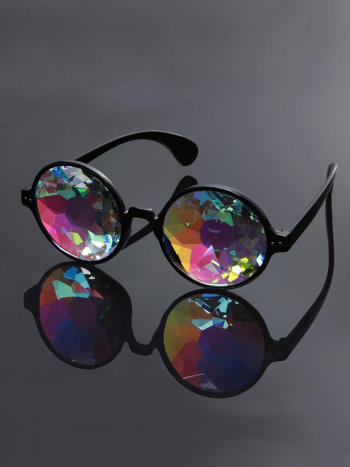 - Interesting and compelling: rainbow, thick, mirrored, multi-faceted, glass crystal lenses are the best way to turn heads when at any dance party, convert, music festival, or firework show