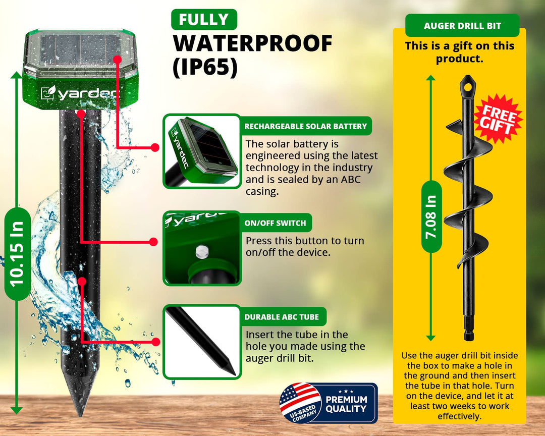- Original Ultrasonic Repellers – Gopher Repellent Ultrasonic Solar Powered (4-Pack) - Easy to Use Solar Mole Repellent Ultrasonic with an Auger Drill Bit - IP65 Waterproof Sonic Repeller Stakes for Groundhog, Vole, Snake, etc. by YARDEC