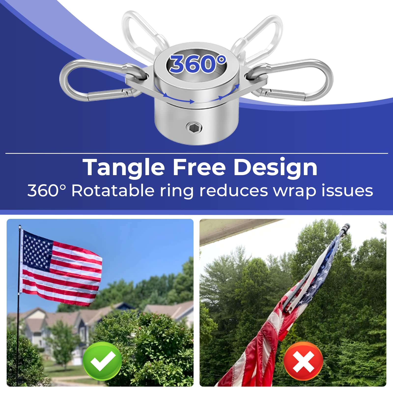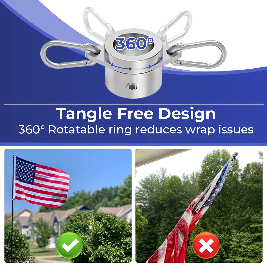 - So if you're ready to upgrade to a smarter, more effective flagpole design, pick up the 360-degree rotating anti-wrap ring today. Your flag will thank you!