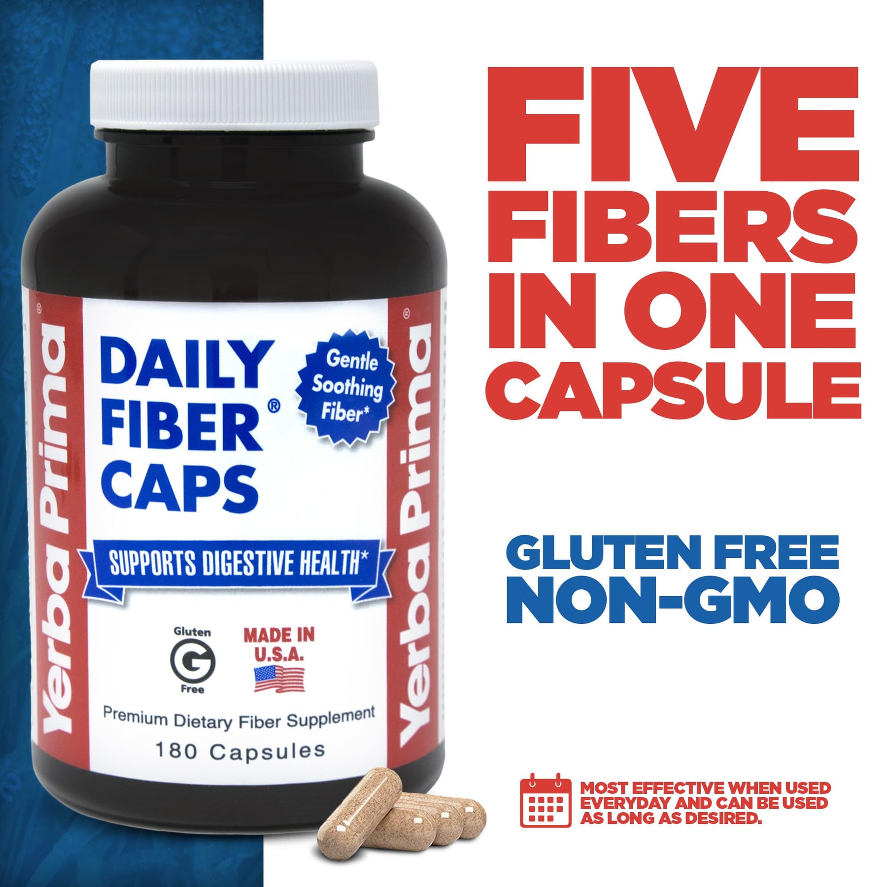 - Original Dietary Fibers – Daily Fiber Capsules, 180 Caps (Pack of 3) - Soluble Dietary Fiber Supplement - Colon Cleanse - Gut Health - Constipation Relief, Vegan, Non-GMO, Gluten-Free by Yerba Prima