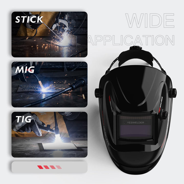 - Original Welding Helmets – True Color Solar Powered Auto Darkening Welding Helmet, Wide Shade 4/9-13 for TIG MIG ARC Weld Hood Helmet by YESWELDER
