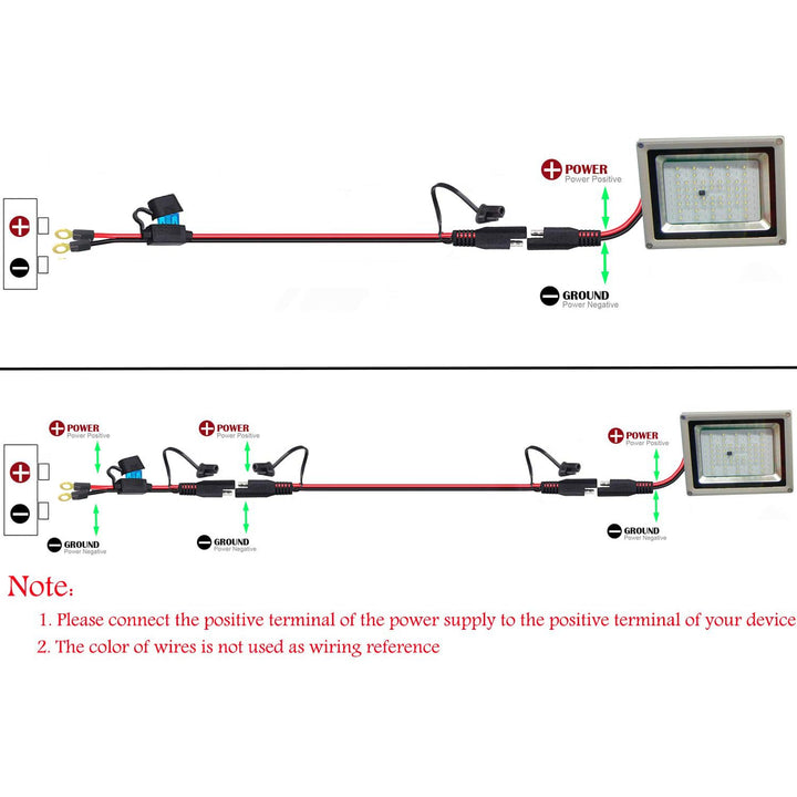 - Eyelet Terminal Connector: SPT-2,10AWG/2C; Length: 2 feet; Color: Red/Black; With 15A fused for electrical protection; Fast and easy to connect and disconnect.