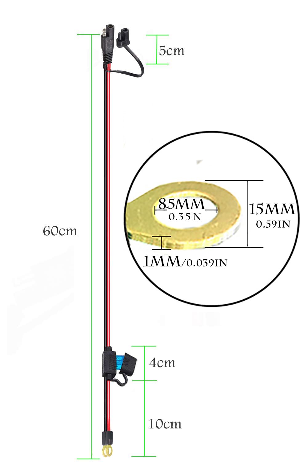 - Original Terminals & Ends – SAE Connector,SAE to O Ring Terminal Harness with 15A Protection Fuse for Safety, 2-Pin Quick Disconnect Plug,SAE Battery Extension Cable with 2FT 10AWG for Motorcycle Cars. (60CM) by YETOR