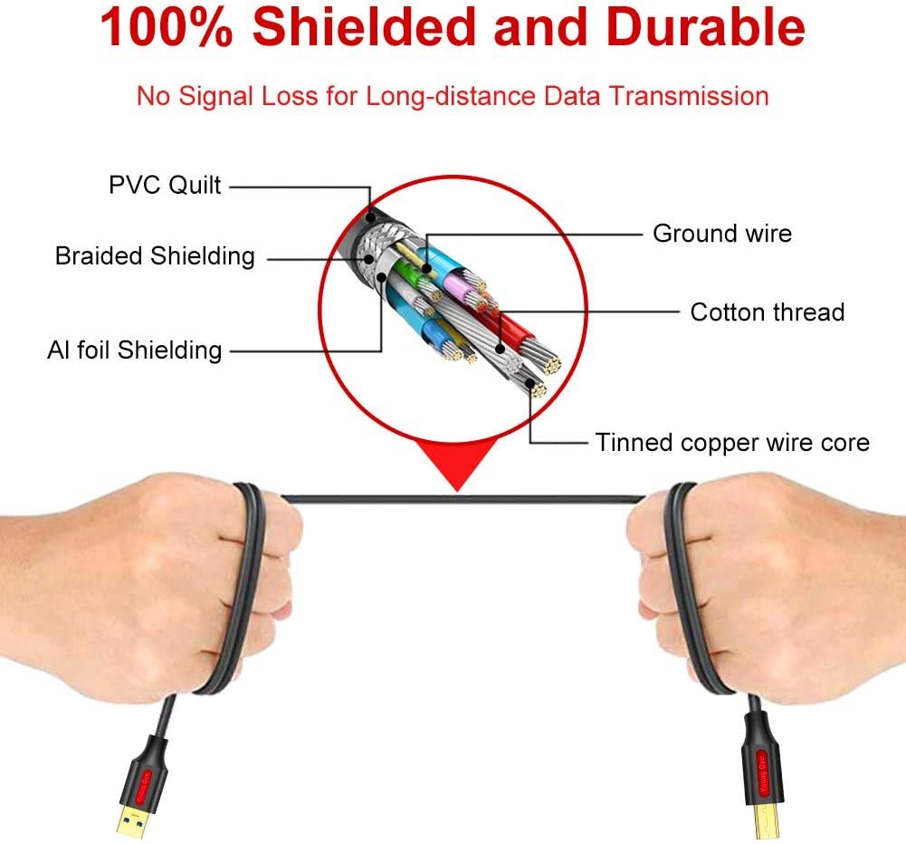 - High Speed Transmission:USB A to USB B Cable Data transfer speed up to 5 Gb/s, 10x faster than the speed of USB 2.0, perfect fit into the USB 3.0 port in your devices.If you want the fastest transfer speeds between your computer/ Laptop and external device please Use this cable.