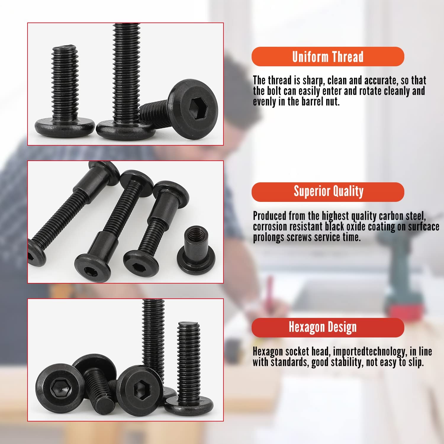 - Screw Head Diameter: 12.8mm; Female Rod Length: 15mm/ 0.59inch