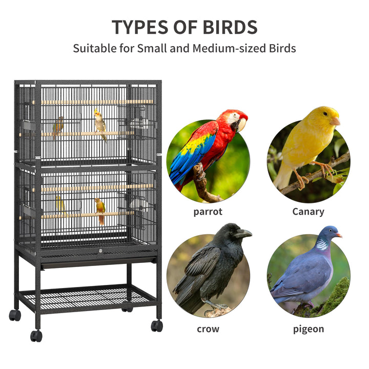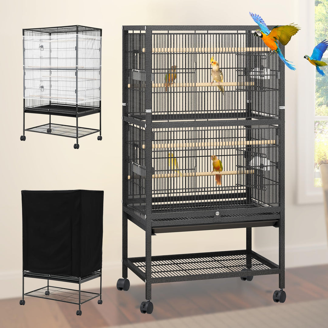 - HIGHLY MOBILE - Bird cage with stand that sits on four heavy duty rolling casters allows convenient movement. Easily relocate your pets and enjoy the outdoor weather.