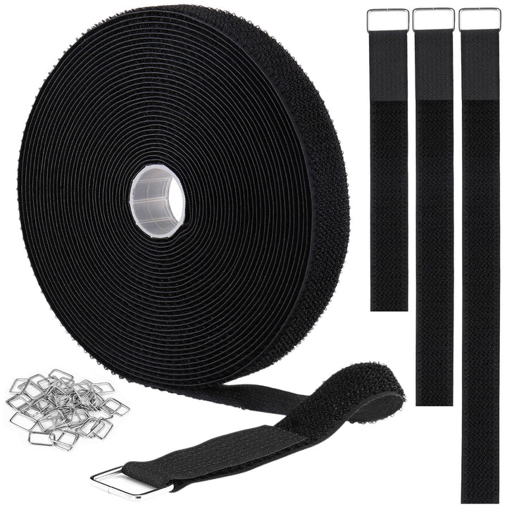 - Easy to UseHooks and loops are intertwined on the same side, just pass through the metal square buckle, and reverse the bonding, then cut to the appropriate length. 32ft straps with 50pcs buckles, you can make up to 50pcs buckle straps.