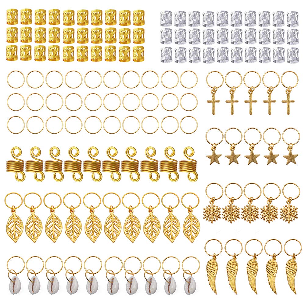 - Original Clips – 140 Pieces Dreadlock Jewelry Aluminum Dreadlocks Beads Metal Hair Cuffs Hair Rings Shell Charms Hair Coils Braiding Hair Pendants Decoration Clips by YMHPRIDE
