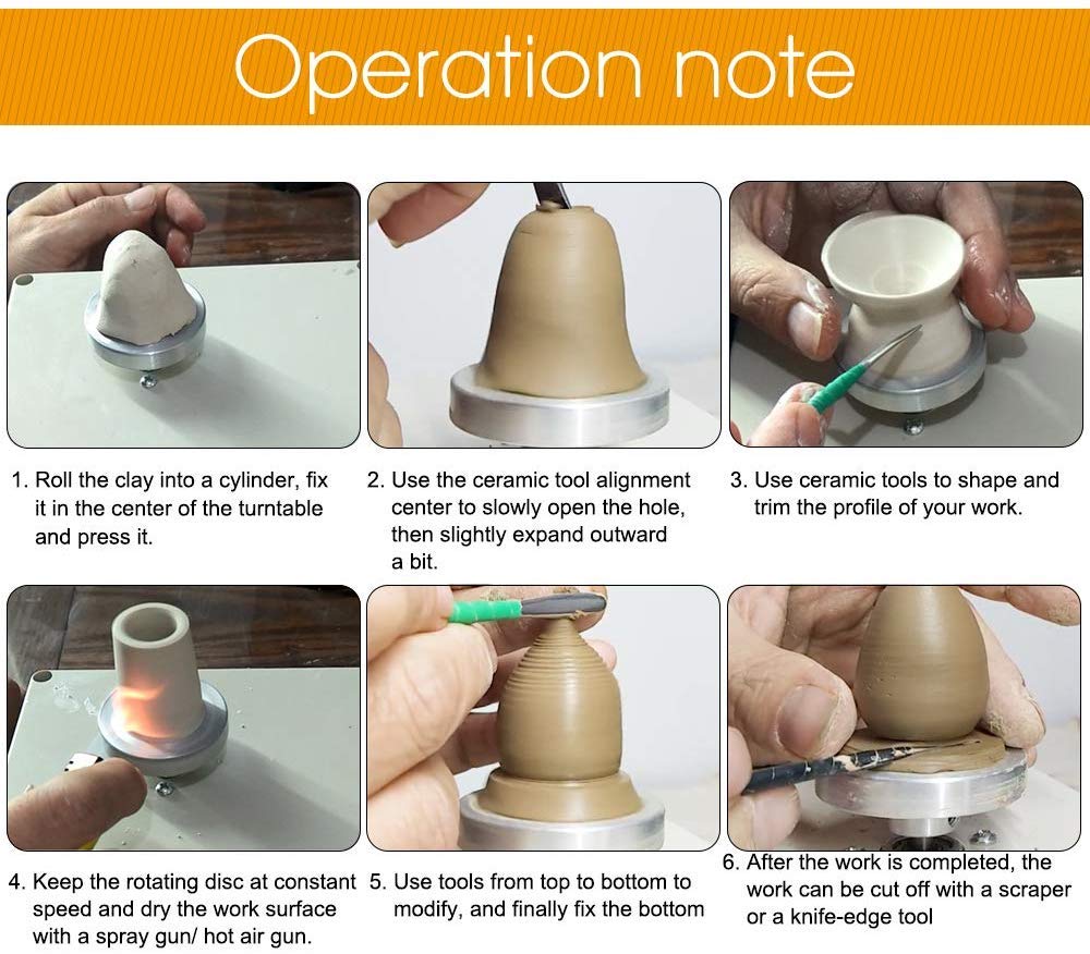 - Original Ceramic & Pottery Tools – Mini Pottery Wheel, USB Pottery Machine with 6 Pottery Shaping Tools, 2000 RPM Pottery Wheel Mini Clay Making Pottery Machine Ceramic DIY Craft for School Teaching, Pottery Bar or Home Use by Yofuly