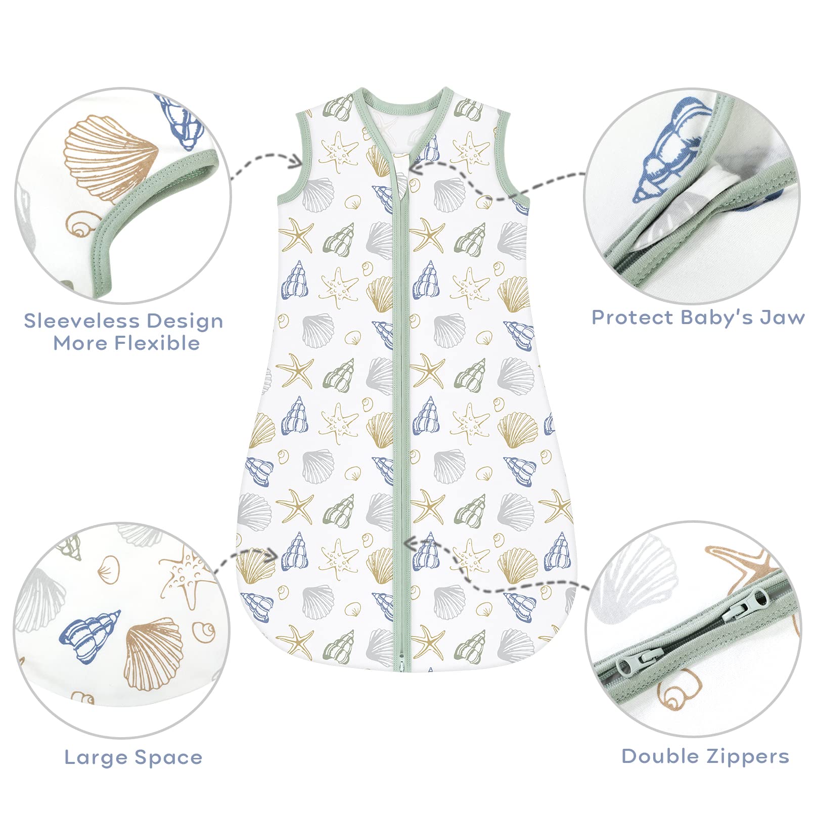 - High Quality Zipper with 2-Way: It's double zipper allows unzip from the bottom for easy diaper change. The baby sleep sack with External wash tag design, zipper protector on the top and the back of zipper, protect your baby's jaw and skin from being scratched and provide a peaceful and restful sleep for the little one.