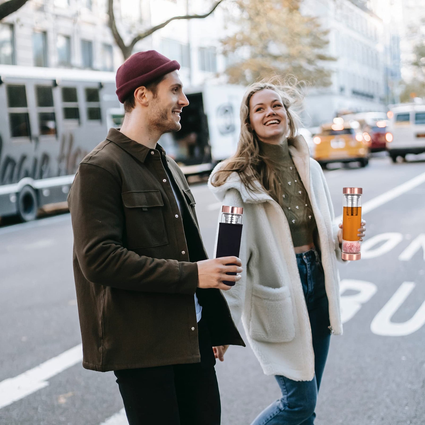 - Original Decorative Bottles – Crystal Water Bottle, Rose Quartz Healing Glass Water Bottle, Includes a Loose Leaf Tea Infuser Bottle and Protective Sleeve by Yoption