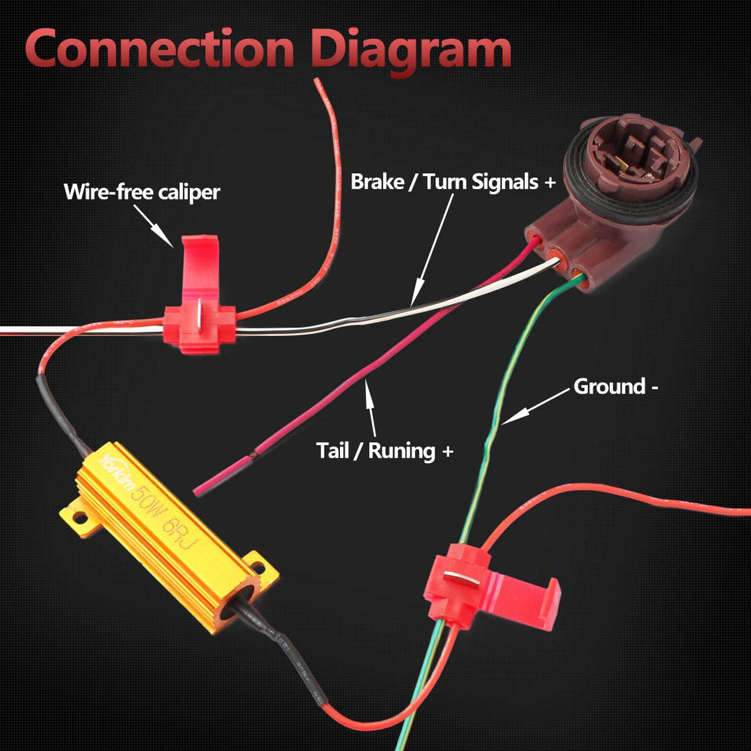- Easy Installation - It is super easy to install these LED resistors, just connect one wire to ground and other wire to the turn/brake wire. Apply provided quick wire clips so you don't have to cut any existing wires. It will work on any vehicle and can be connected across the turn signal bulbs or License Plate Lights to simulate the load of a regular filament bulb (2 Amp load).