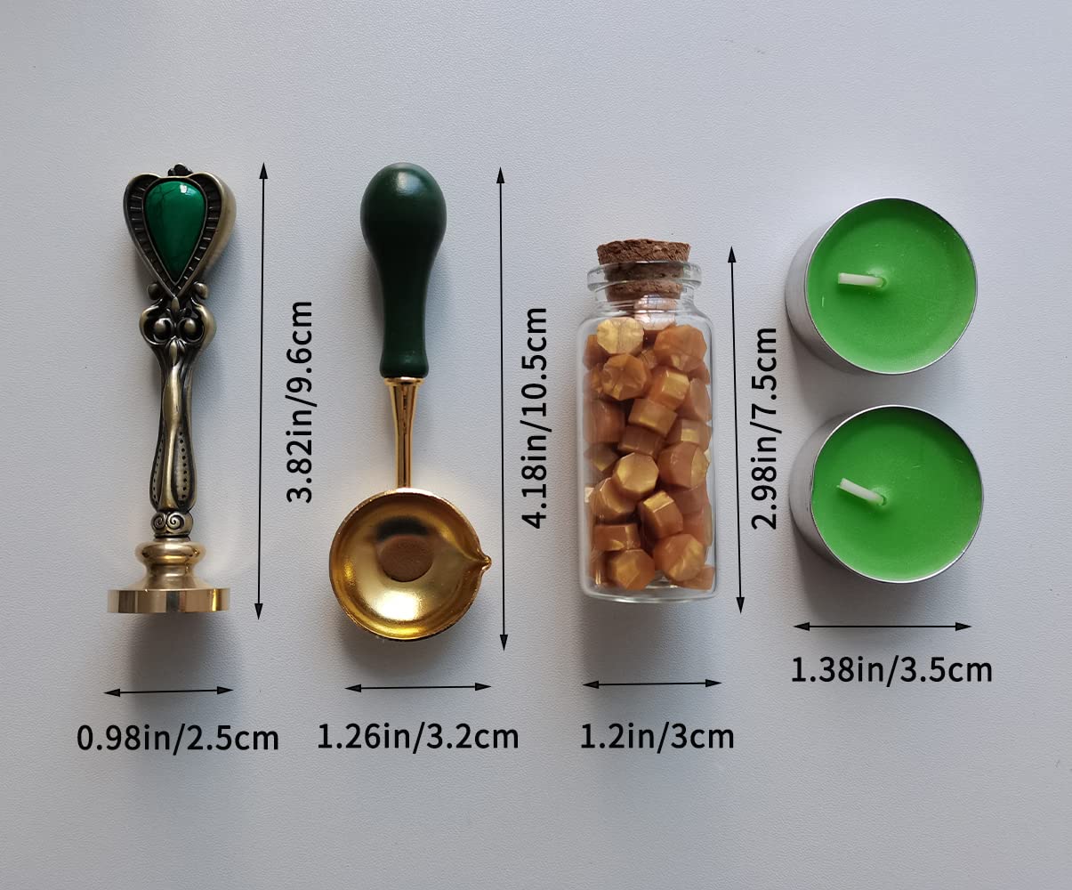 - [Package includeds] 1*Fancy letters D Seal Stamp , Gold Sealing Wax Beads x 1 Bottle(about 60 pcs), 2*Green Candles, 1*Melting Spoon, 1*Gift Box.