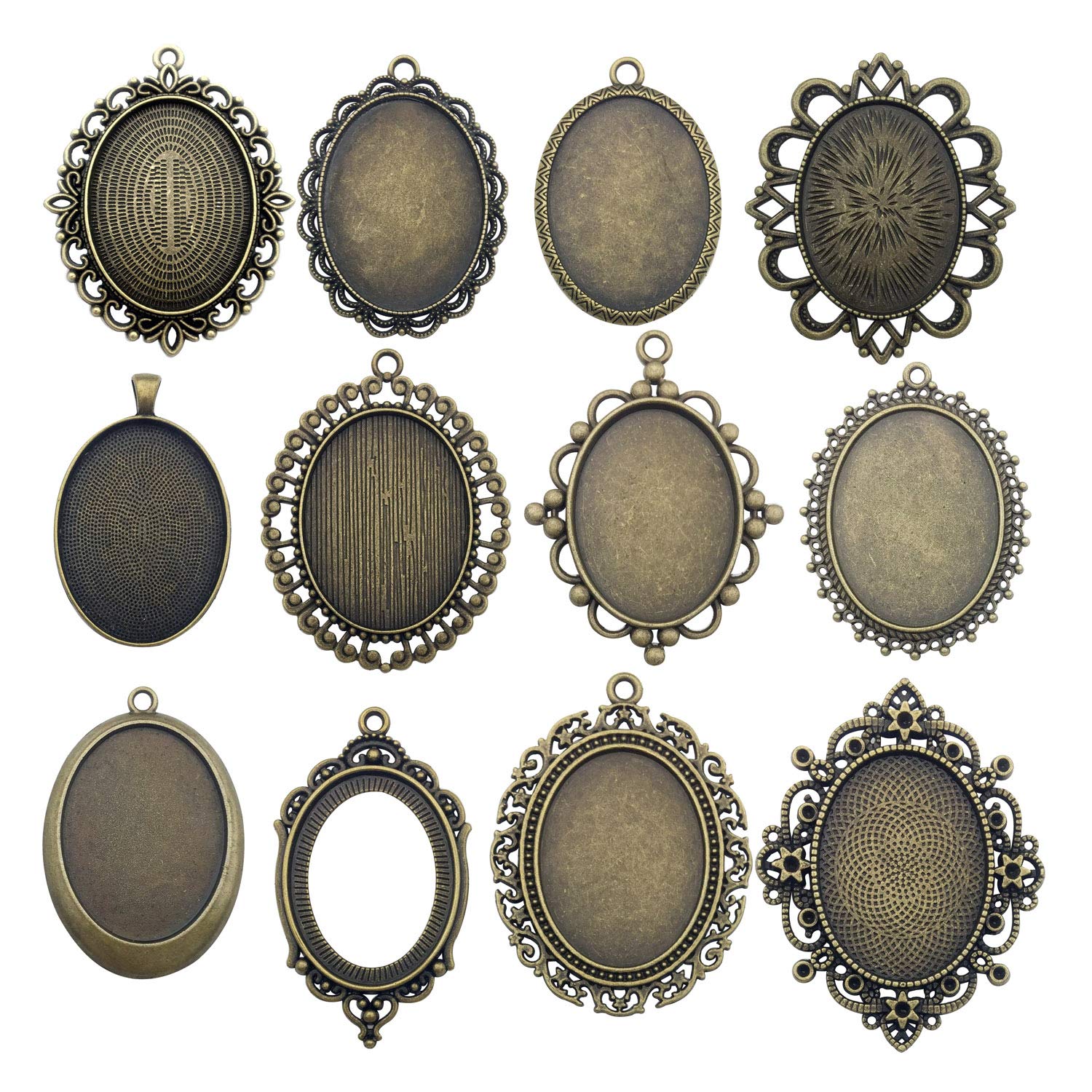 - Original Charms – 10 Pendant Trays, 30x40mm, Blank Oval Cabochons Base Setting Bezel Frame Metal Cameo for Photo Pendant Jewelry Making (Antique Bronze-HM277) by Youdiyla
