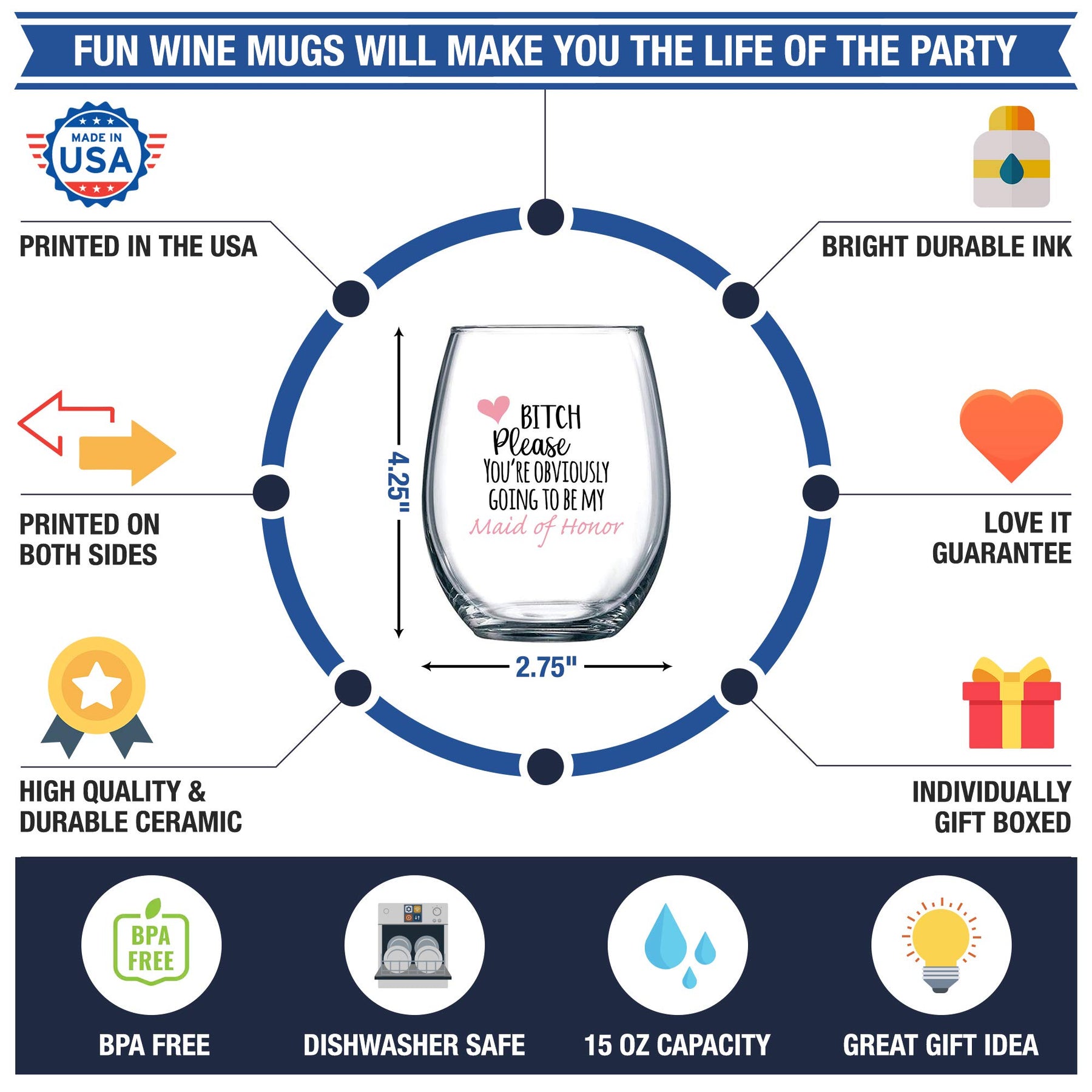 - Original Wine Glasses – You're Obviously Going To Be My Maid Of Honor Funny Stemless Wine Glass 15oz – Bridesmaid Proposal Gifts for Best Friend or MOH - Perfect Present for Wedding or Bachelorette Party by Gelid