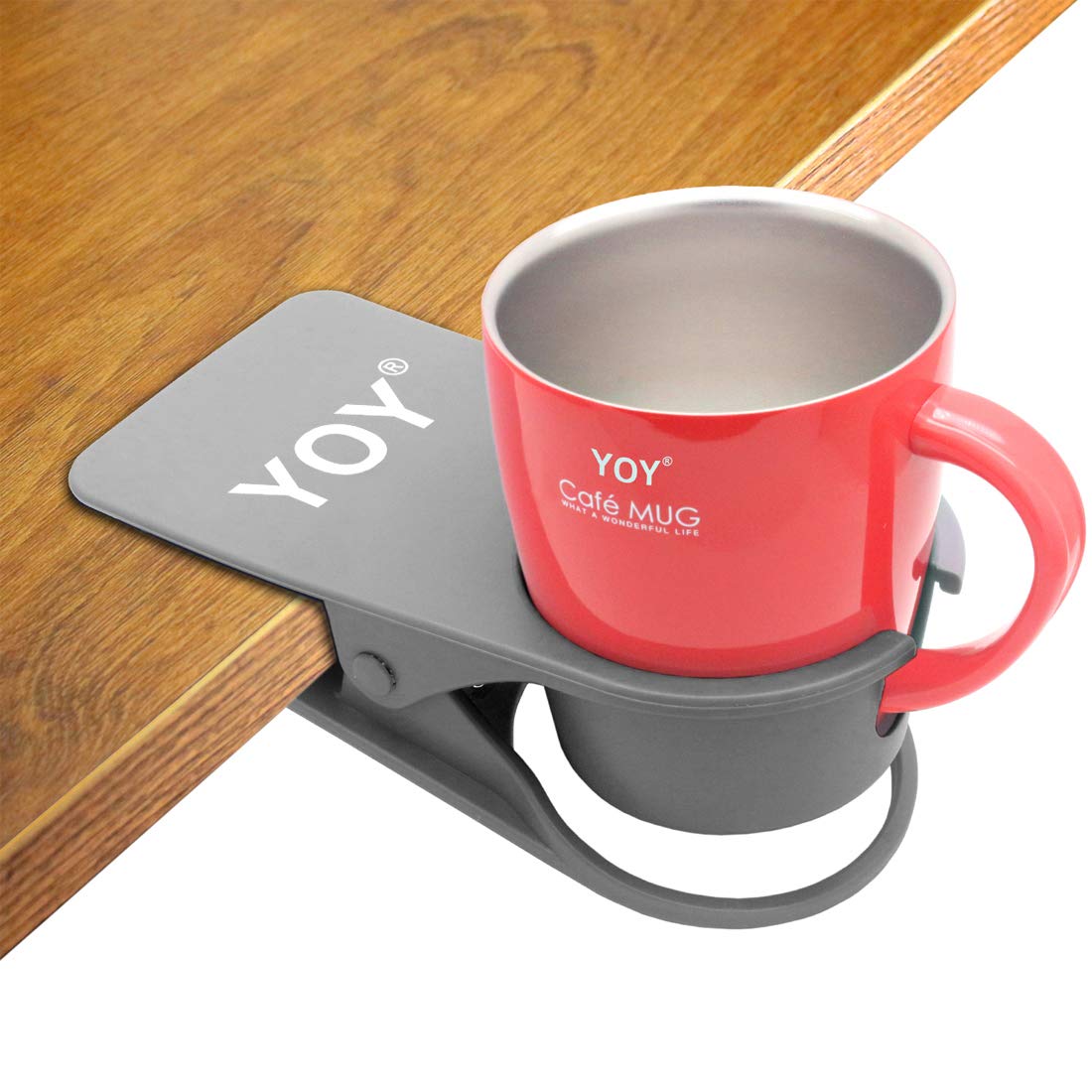 - Original Cup Holders – Drink Cup Holder Clip - Table Desk Side Water Glass Beer Bottle Beverage Soda Coffee Mug Holder Cup Saucer Clip Design for Home Office, Gray by YOY