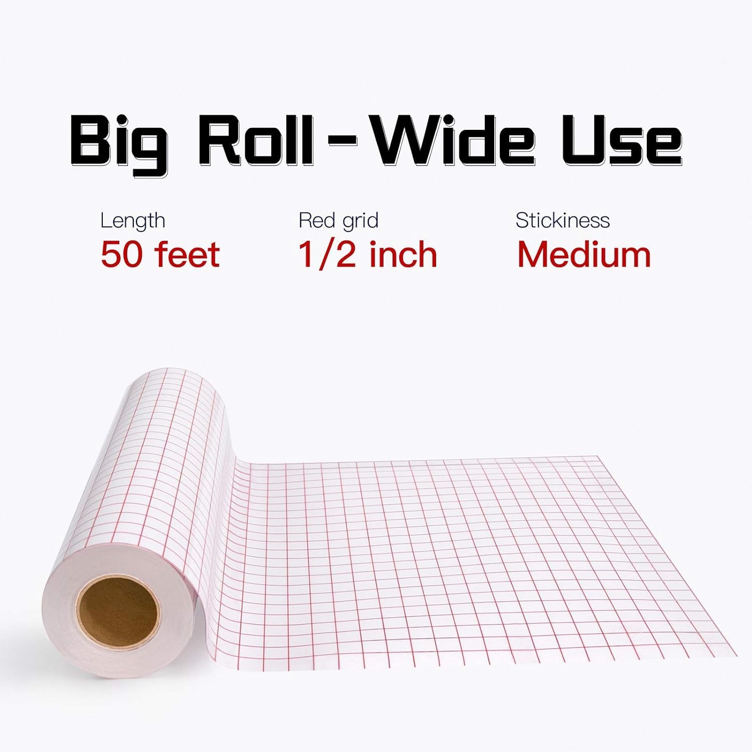 - CLEAR RED GRIDThe 1/2” see through red grid lines makes transfer tape for vinyl easy to measure and cut your vinyl transfer tape without waste. What's more, our transfer tape roll is also tear resistant