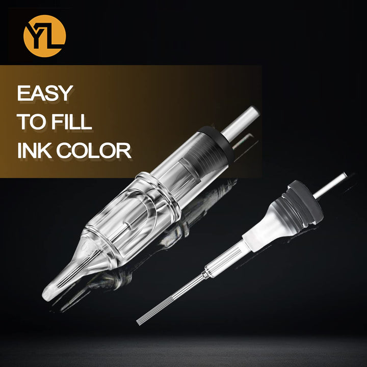 - EASY TO FILL COLOR - The needle cartridges are allows artists to set up needles and switch needle configuration very quickly during tattooing process. The round liner needle adopts a funnel-haped design, which stores more ink, and the ink discharge is very uniform, without ink jetting, tattooing longer line.