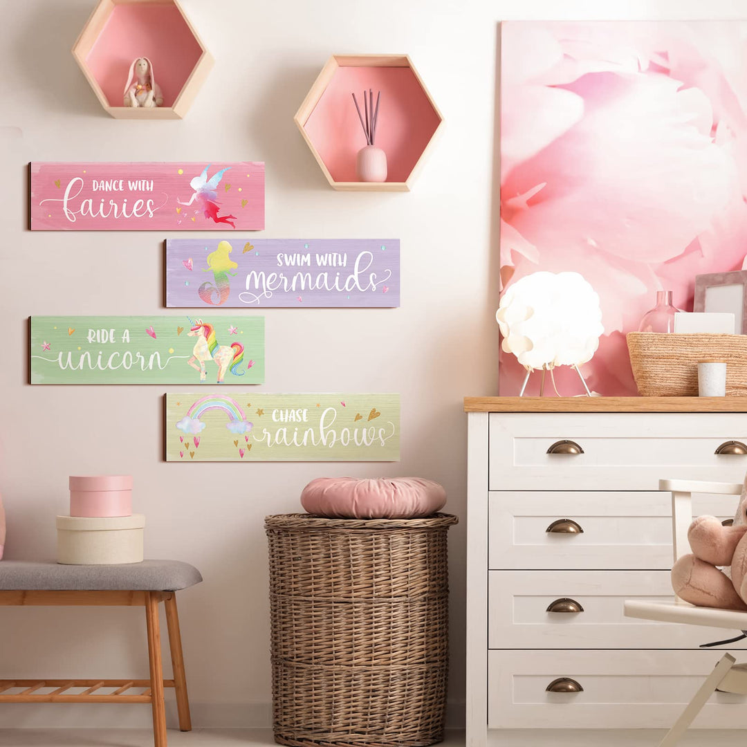 - Original Decorative Signs & Plaques – Unicorn Rainbow Girls Room Wall Decor Unicorn Rainbow Motivational Wall Art Inspirational Wall Art Room Decor Unicorn Bedroom Decor for Girls Kids Bedroom Nursery Decorations (Novel Style) by Yulejo
