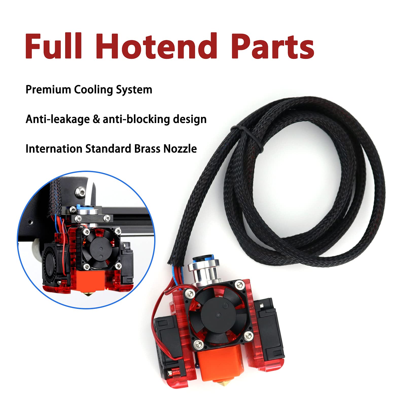 - PREMIUM COOLING SYSTEM: 24V / 40W heating, the temperature can reach up to 350 ° C,and we adopt 3 pieces cooling fans (30*30*10mm).Multiangle fast heat dissipation.high quality alumium Heat sink,promotes more efficient heat dissipation,To solve the issues of heatbreak blocked