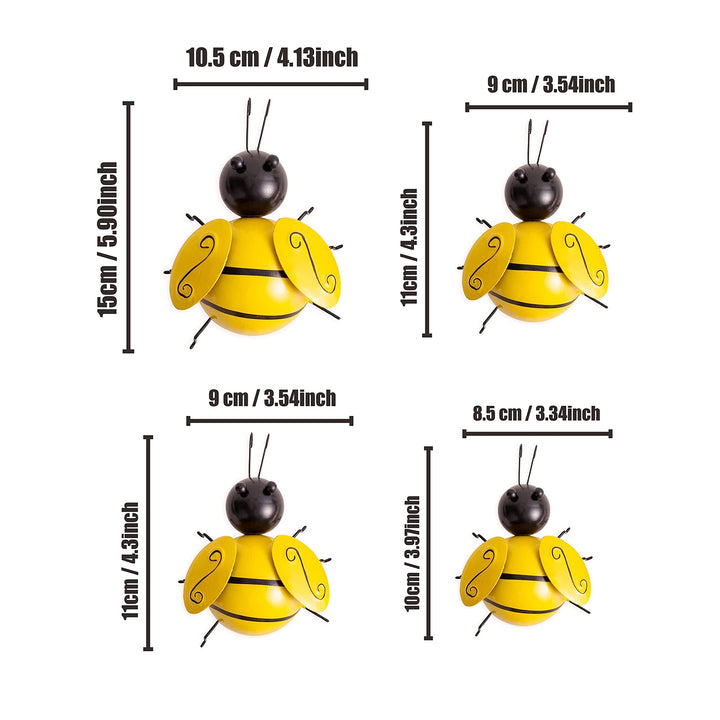 - Set of 4 Metal Bee Wall DecorPackage include 1Small+ 2Medium+1Large. Small: 3.97 * 3.34 inches, Medium: 4.3 * 3.54 inches, Large: 5.9 * 4.13 inches