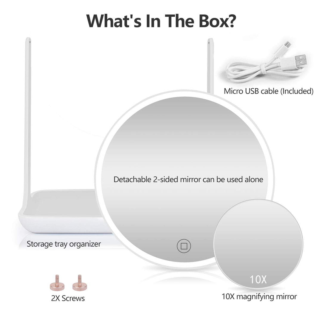 - 3Rechargeable Magnifying Makeup Mirror with Built-in BatteryYou can power the magnified lighted vanity mirror through USB charging cable directly which has been included in the pack for saving money from replacing battery all the time.