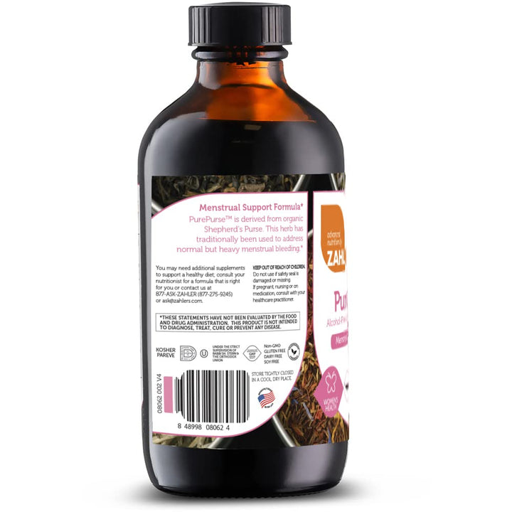 - Original Blended Vitamin & Mineral Supplements – PurePurse, Liquid Sheperd’S Purse which Helps Reduce staining, All Natural Liquid Menstrual Support Formula, Certified Kosher,4oz by Zahler