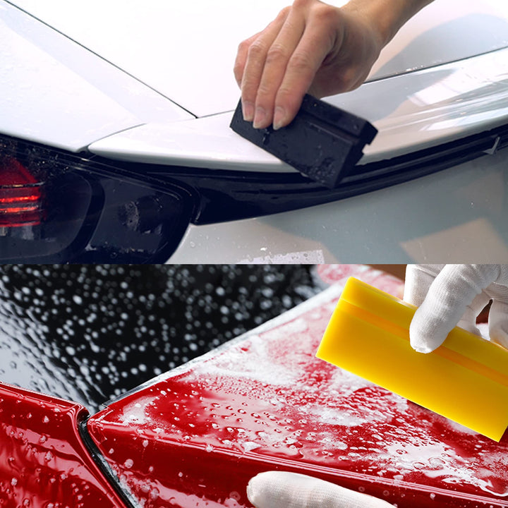 - Include: Window tinting tools include: 1pcs yellow rubber squeegee, 1pcs black rubber squeegee. Size: 4.8inches(L)×1.9inches(W).