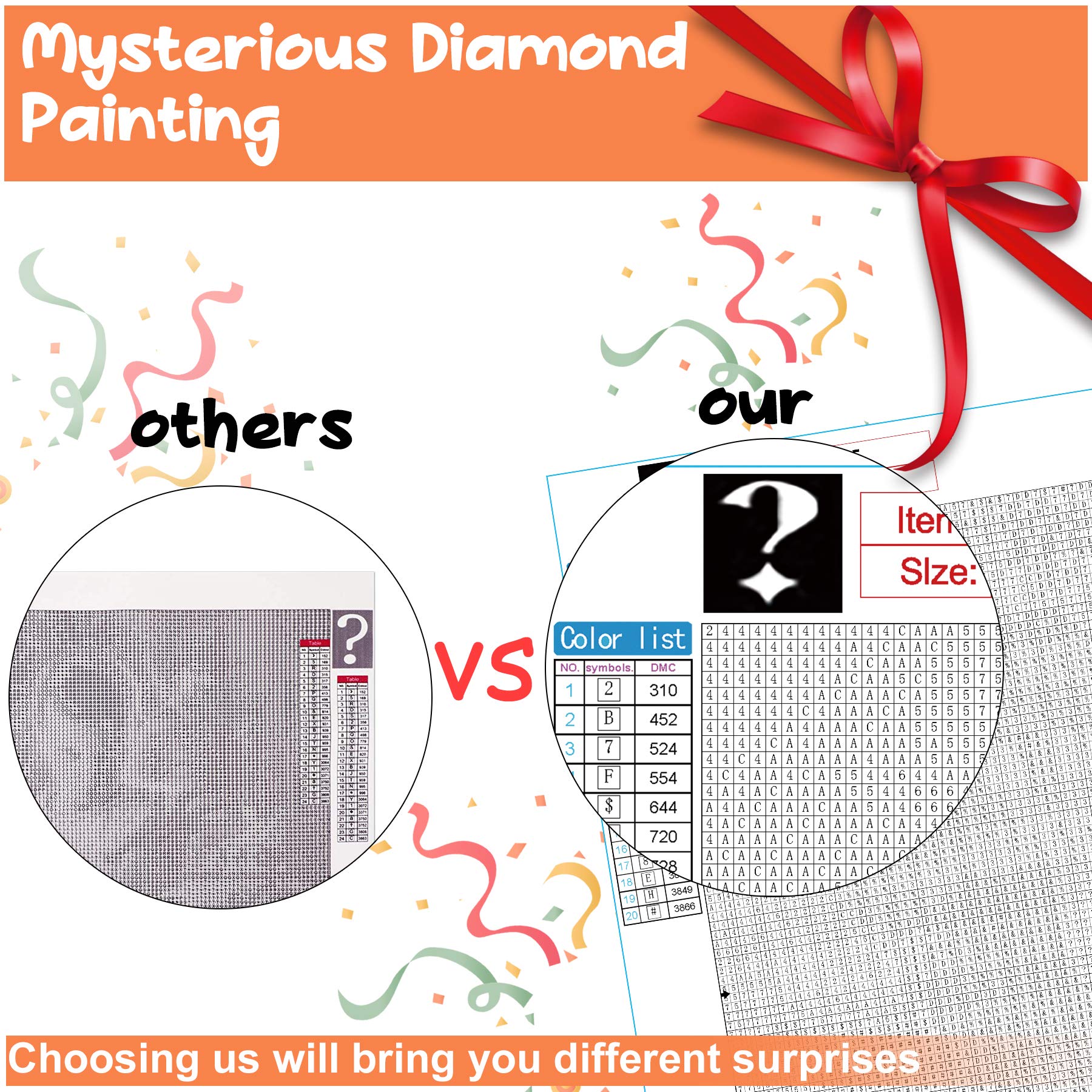 - [Mysterious adventure] You are tired of choosing a variety of diamond paintings. Come here and have a look. I believe you will be satisfied with this mysterious gift box. Come and take an adventure for yourself. We will randomly provide you with different styles of pictures. Every diamond painting is carefully selected by us. It may contain flowers, puppies, kittens, landscapes, etc. What is inside is waiting for your adventure.
