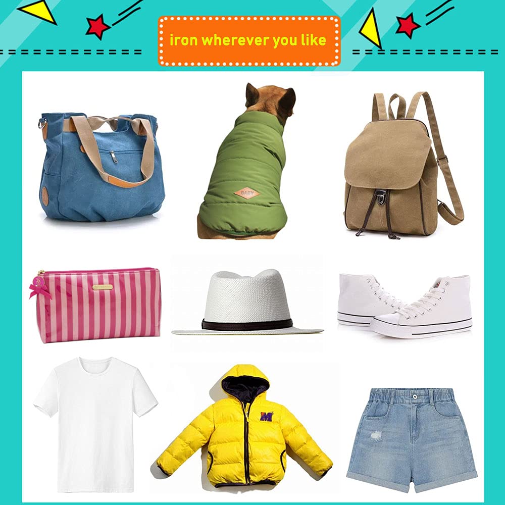- Perfect iron them on backpacks, caps, hats, jackets, pants, shirts, dress, wedding dress,shoes, DIY arts crafts and more.