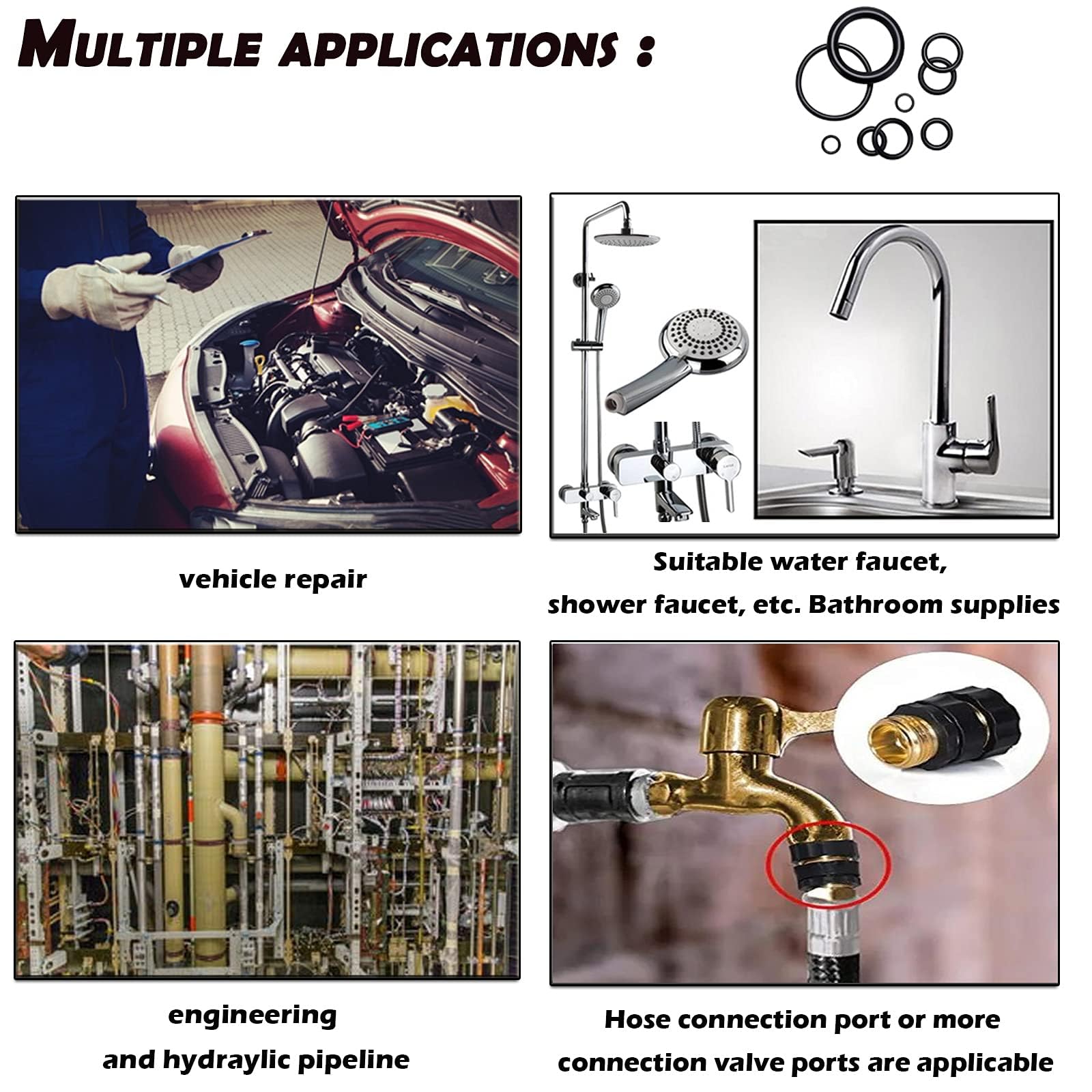 - {WIDE APPLICATION} O ring kit for faucets,plumbing,pressure washer,hose nozzles,sinks,filters,hydraulics fluid,auto engines, machinery bearings,pumps,boats,oils,gas control valve, spray, air,kitchen bathroom water fitting seal leak repair