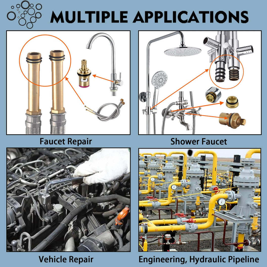 - {O RING APPLICATION}: Rubber o rings kit used for plumbing faucet repair,pressure washer hose,machinery bearings, pumps, boats, oils, gas control valve,air or Gas water fitting leak seal