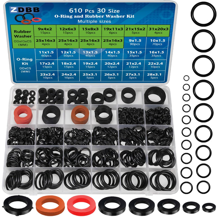 - Original Faucet Washers – 7 Size Water Hose Gasket and 20 Size O Ring Rubber Washer Assortment Kit 610 Pcs Nitrile Washers Set for Plumbing Faucet Pipe Hose Shower Head Pressure Washer Sealing Repair OD 9-31MM by ZDBB