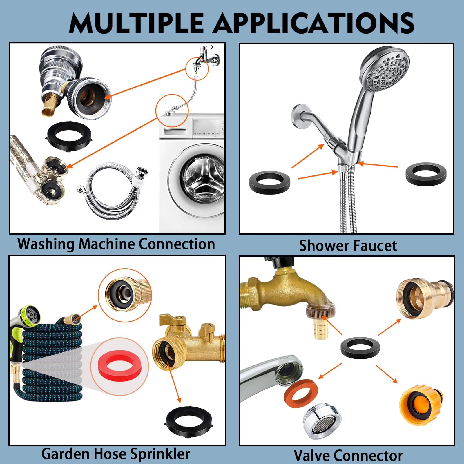 - {WASHERS APPLICATION}: Plumbing flat washers kit used for home kitchen/ bathroom plumbing faucets shower hand spray hose splitter,shower hose wand, various RV faucet pipe,water supply line, outdoor spigot elbows adapter,outside faucet repair kit replacement