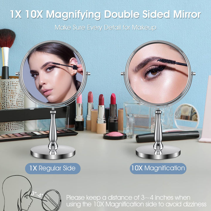 - Original Basic Cases – 8 Large Makeup Vanity Mirror, Double Sided 1X 10X Magnification Mirror, 360 Swivel Round Mirror with Stand and Removable Base, High Definition, Chrome Finish(Silver) by zelaxy