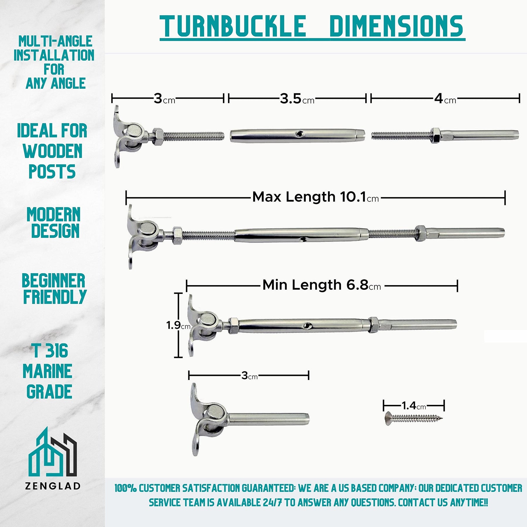 - MULTI ANGLE: For Different Applications It Can Be Affixed To Posts Made Of Wood Or Vinyl - Interior Or Exterior. The Hooks Work For Deck And Outdoor Spiral Staircase, Angle Stair Railing, Handrails For Decks. Turnbuckle For 1/8 Cable Wire Railing Suitable For Vertical And Horizontal Application.