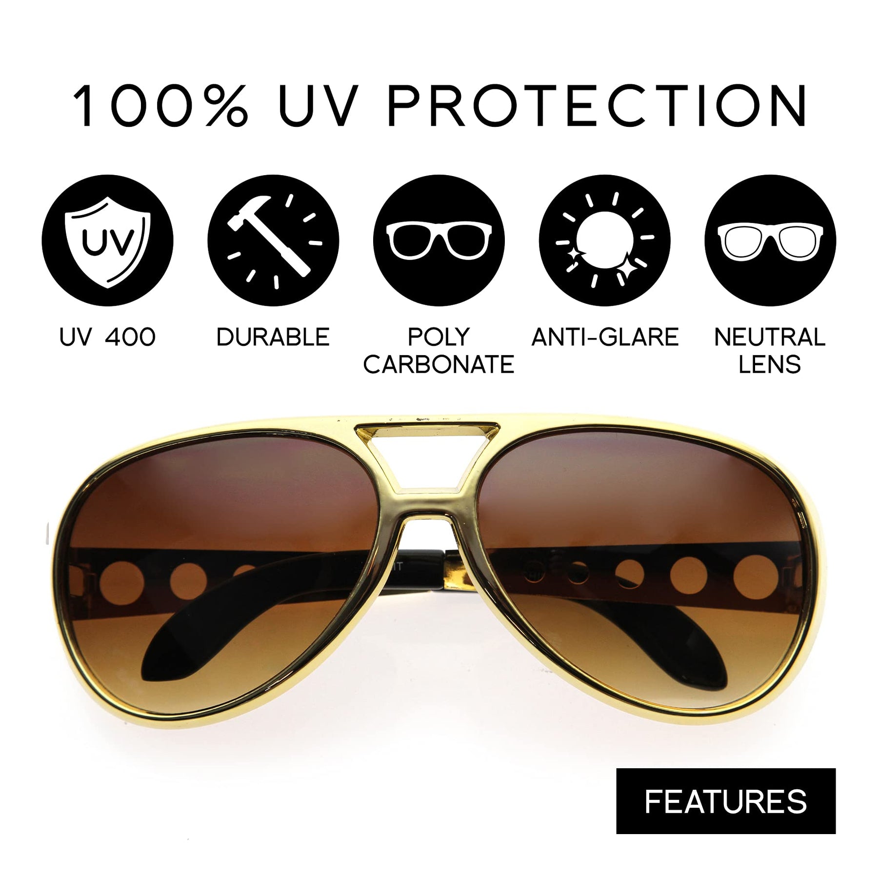 - PREMIUM 50S/60S ROCK ‘N’ ROLL FRAME: Reminiscent of the iconic Rockstar look, these aviators are great for parties and key in your King of Rock ‘n’ Roll costume. From the eye-catching gold shine to the rockstar-style gradient lenses, be the life of the party!