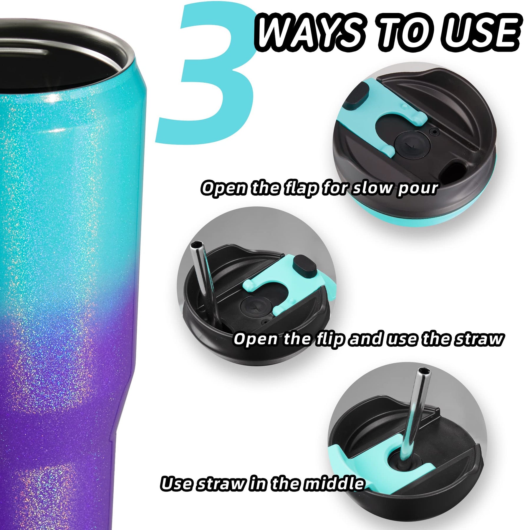 - 40 OZ BPA-free Travel Cup: Comes with a threaded lid, 100% leak-proof or bullet-proof. You don't have to worry about spilling it when you carry it. Plus a removable handle, two reusable stainless steel straws, and brush.