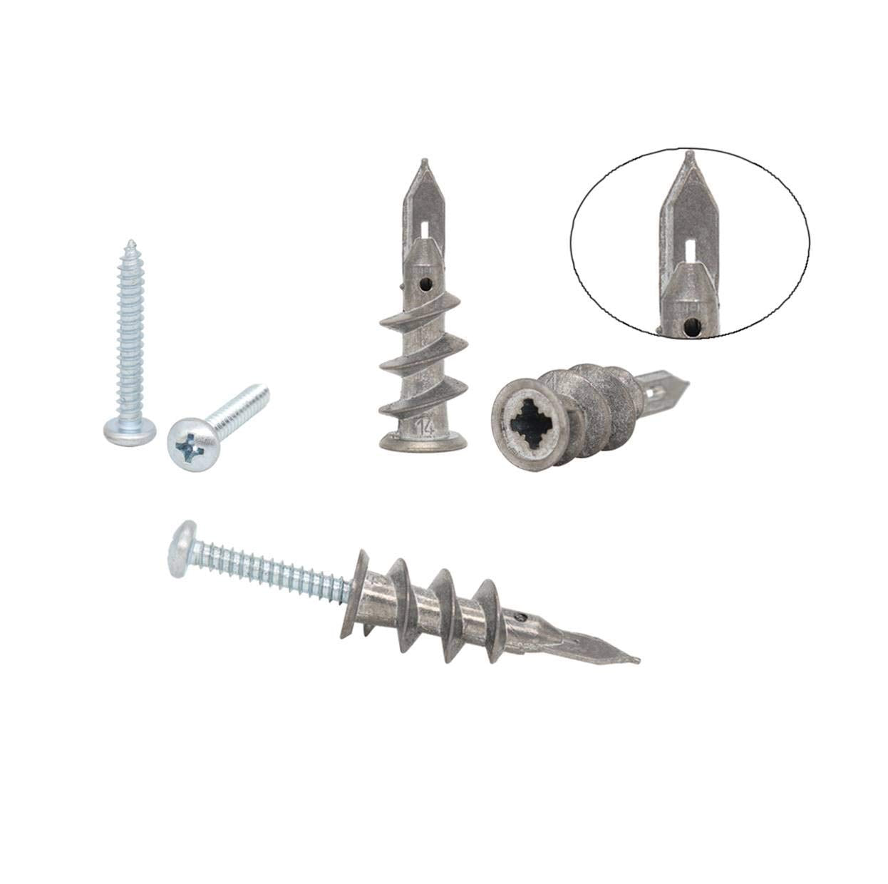 - High strength, easier to start than other self-driving anchors. No need to prepare holes when used on drywall/hollow walls. It can hang up to 50 pounds.