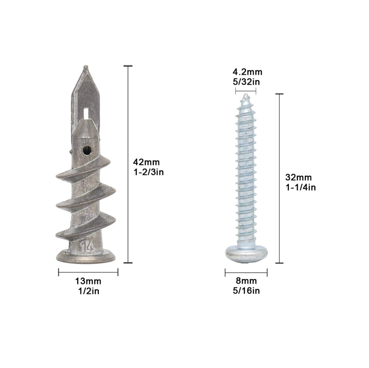 - Original Drywall Anchors – Zinc Self-Drilling Drywall Anchors with Stainless Steel Screw Kit, Heavy Duty Metal Wall Anchors and #8 x 1-1/4 Inches Screws, 60 Pieces in Total by Wennyn
